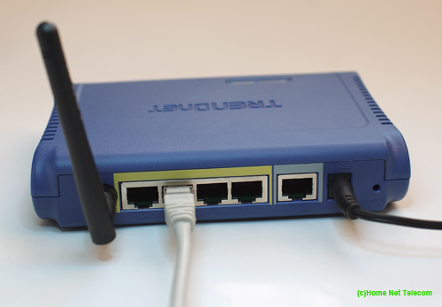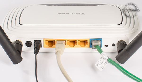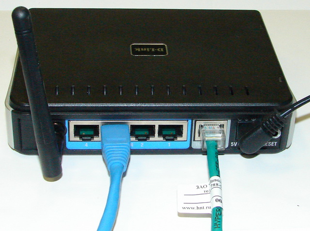 Кабель интернет-провайдера HNT подключаем в разьём WAN интернет-маршрутизатора. (см. фото):