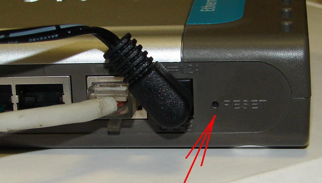 1. Если Вы осуществляете перенастройку не нового интернет-маршрутизатора, а также ошиблись или у Вас на каком-то этапе, что-то не получается, то Вы можете вернуть роутер к настройкам по умолчанию. Для этого, при включенном питании роутера, нажмите на 10-15 секунд тонким предметом (скрепкой или заточенным карандашом) на кнопку RESET (см. фото):