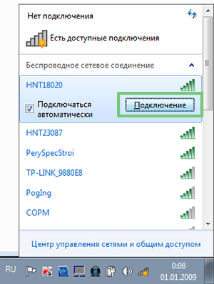 После этого появится список доступных беспроводных сетей. Выберите сеть HNT_номер_вашего_договора и нажмите кнопку Подключение.
