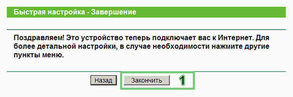 Для сохранения всех ранее введенных настроек нажмите кнопку "Закончить" в разделе Завершение.