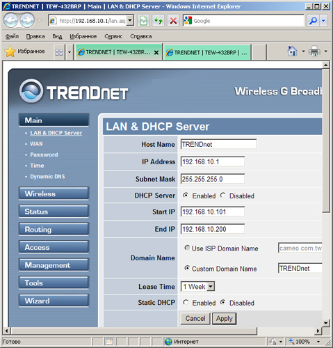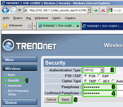Настройка беспроводного интернет-маршрутизатора (роутера) TRENDnet TEW-432BRP