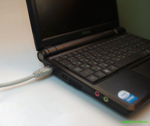 С другой стороны подключаем в разъем сетевой карты компьютера. (см. фото)